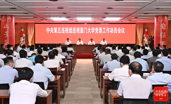 根据中央关于巡视工作的统一部署,近日,中央第五巡视组巡视厦门大学党委工作动员会召开。会前,中央第五巡视组组长杨正超主持召开与厦门大学党委书记张彦,党委副书记、校长张荣的见面沟通会,传达了习近平总书记关于巡视工作的重要指示精神,通报了有关工作安排。会上,杨正超作动员讲话,对做好巡视工作提出要求。张彦主持会议并讲话。