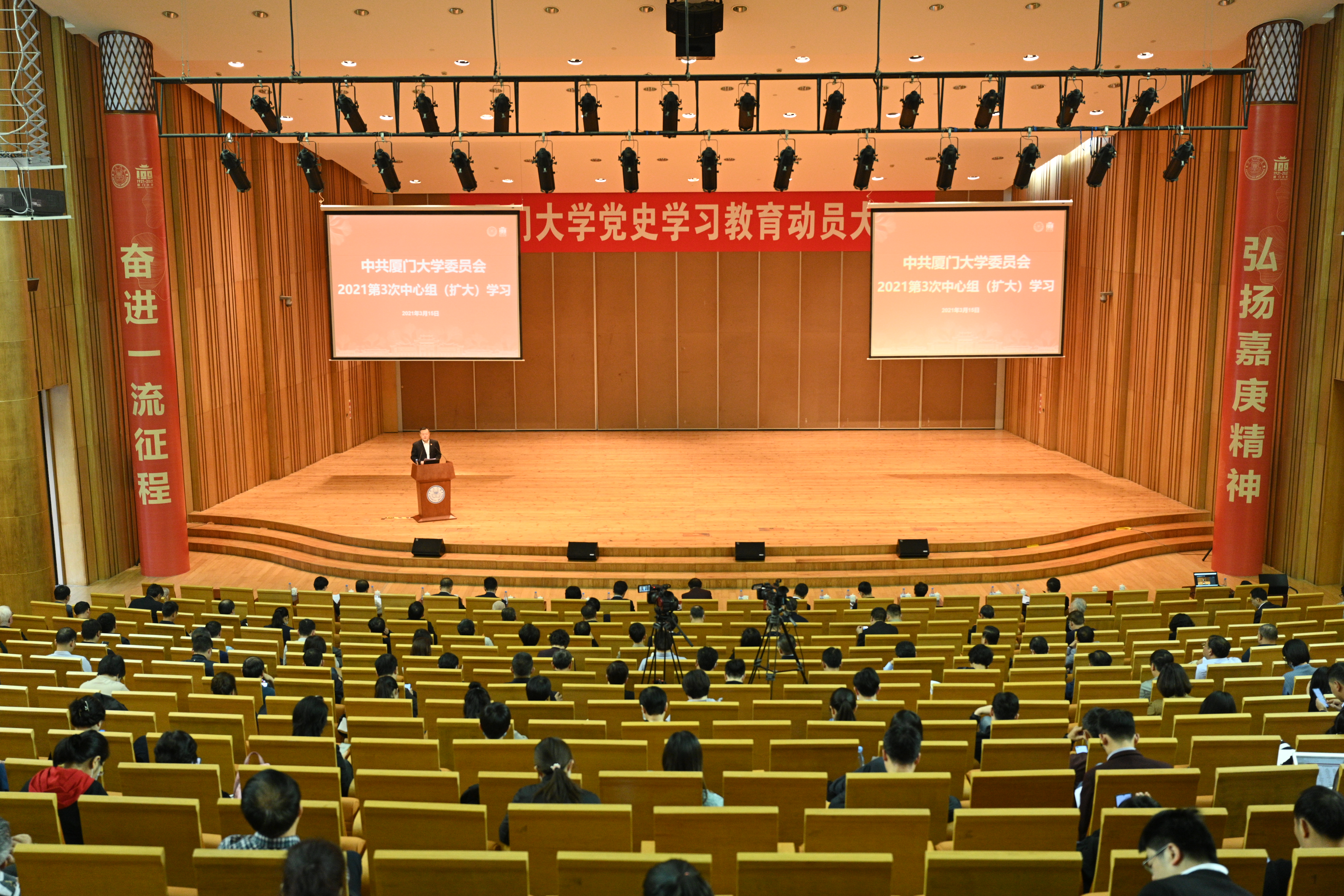 会议强调,今年是我们党成立100周年,厦门大学也喜迎建校100周年。站在“两个一百年”奋斗目标的历史交汇点上,学习好、贯彻好、落实好全国两会精神至关重要。要把学习贯彻两会精神与当前开展的党史学习教育结合起来,突出学党史、悟思想、办实事、开新局,坚持不懈用党的创新理论武装头脑、指导实践、推动工作。要迅速兴起学习宣传贯彻热潮,狠抓工作落实,坚持一流标准,认真总结厦大百年办学经验,从中汲取宝贵的精神财富和前行的不竭动力,立足新发展阶段,贯彻新发展理念,谋划新发展格局,以一流标准开启百年发展新征程!