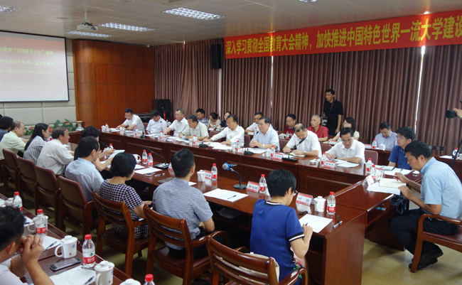 张彦代表校党委强调,深入学习贯彻好全国教育大会精神和习近平总书记关于教育的系列重要论述,要在五个方面下功夫:切实提高政治站位,认真主动学,切实学懂弄通做实;善于进行比较研究,深入系统学,牢牢把握新思想、新观点和新论断,增强推动学校改革发展的针对性;抓住核心重点,具体反复学,立足本职,坚定自信,明确使命担当;带头自学并带领联系单位、分管部门和师生共同学习;把贯彻中央精神与加强基层党建与思想政治工作,与推动教育领域综合改革、加快推进厦门大学中国特色世界一流大学建设有机结合起来,在改革实践中检验学习成效。他特别提出,要发挥厦门大学在教育研究领域的传统优势,深入开展习近平总书记关于教育系列重要论述的学习、研究,以习近平新时代中国特色社会主义思想为指导,写好厦门大学新时代改革发展的奋进之笔,努力为推动新时代中国教育发展多做贡献。