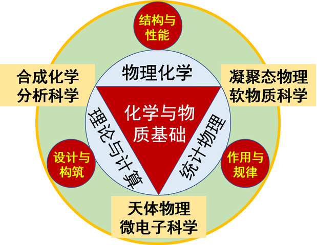 重点发展方向与研究领域:研究物质构筑的合成化学、微电子方向,研究物质相互作用规律的软物质、低维凝聚态与光子学方向,研究物质结构与运动规律的分析科学、天体物理,以及研究物质基础理论的物理化学、理论与计算化学、统计物理等方向。