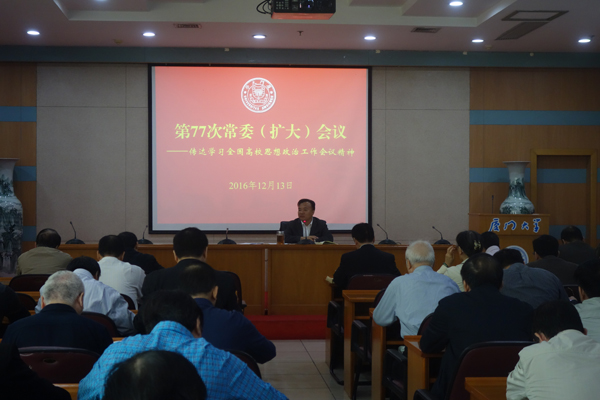12月13日上午,校党委召开常委(扩大)会,传达学习全国高校思想政治工作会议精神。会议由校党委书记张彦主持。校长朱崇实在会上交流了学习体会。
