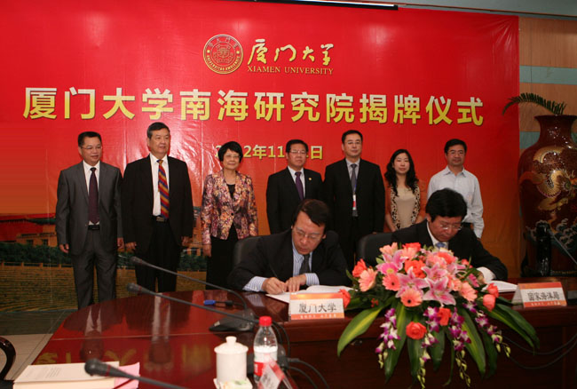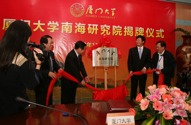 11月2日下午,厦门大学南海研究院正式揭牌成立,国家海洋局国际合作司司长张占海、我校校长朱崇实等人出席揭牌仪式并致辞,仪式上厦门大学南海研究院与国家海洋局还签署了关于开展涉外海洋问题研究的合作框架协议,副校长邬大光代表学校签约。原省人大常委会副主任洪华生,校长助理叶世满等出席仪式。