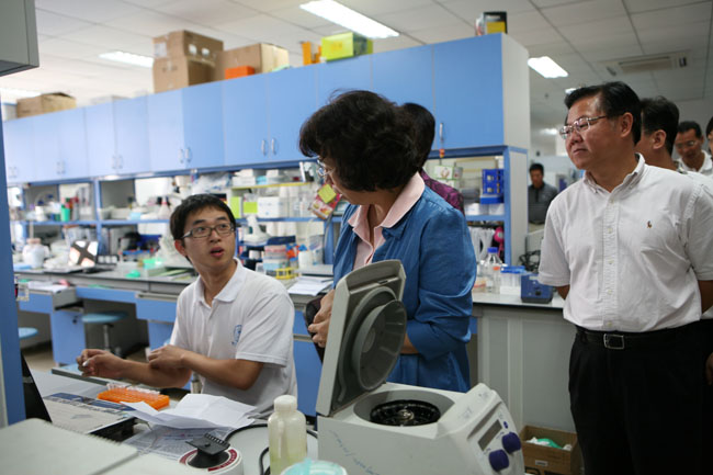 陈小娅十分关心并支持我校科技,特别是国重室的工作,今年2月来校视察时曾专门听取“细胞应激生物学国家重点实验室”的汇报,这次一到生命科学学院,陈小娅就关切地询问起近段时间国重室的发展情况,并深入到实验室,与正在做实验的师生亲切交谈。当得知国重室搬到翔安校区之后,各方面硬件条件得到长足改善时,陈小娅十分高兴,她勉励师生们依托优势,形成特色,多出成果,力争突破。
