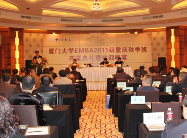 12月6日,厦门大学EMBA2011级重庆秋季班开学。该班是厦门大学管理学院与重庆市国资委联合开办EMBA教育的第四个班级。厦门大学副校长孙世刚,重庆市国资委党委副书记罗聪,厦门大学管理学院院长沈艺峰,重庆市国资委企业领导人员管理处处长李村,厦门大学管理学院EMBA中心主任林涛等出席开学典礼。