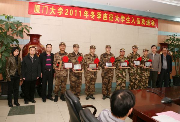 12月10日上午,冬季应征大学生入伍欢送会在嘉庚主楼215会议室隆重召开。校党委副书记陈力文、相关职能部门及相关学院的领导出席了会议。欢送会由学生处副处长徐跃进主持。