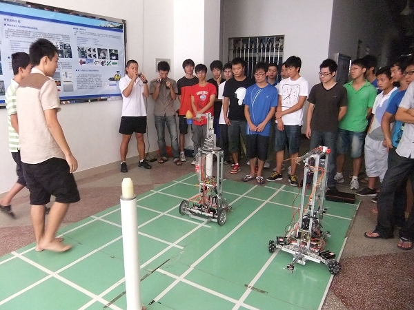 9月8日,厦门大学RCS机器人队预选赛在校本部科学楼一楼大厅举行。在第三届RCS机器人队员的指导下,来自物理与机电工程学院和软件学院的30多位RCS预备队员分三个小组参加了比赛,并有多位领导和老师莅临指导。