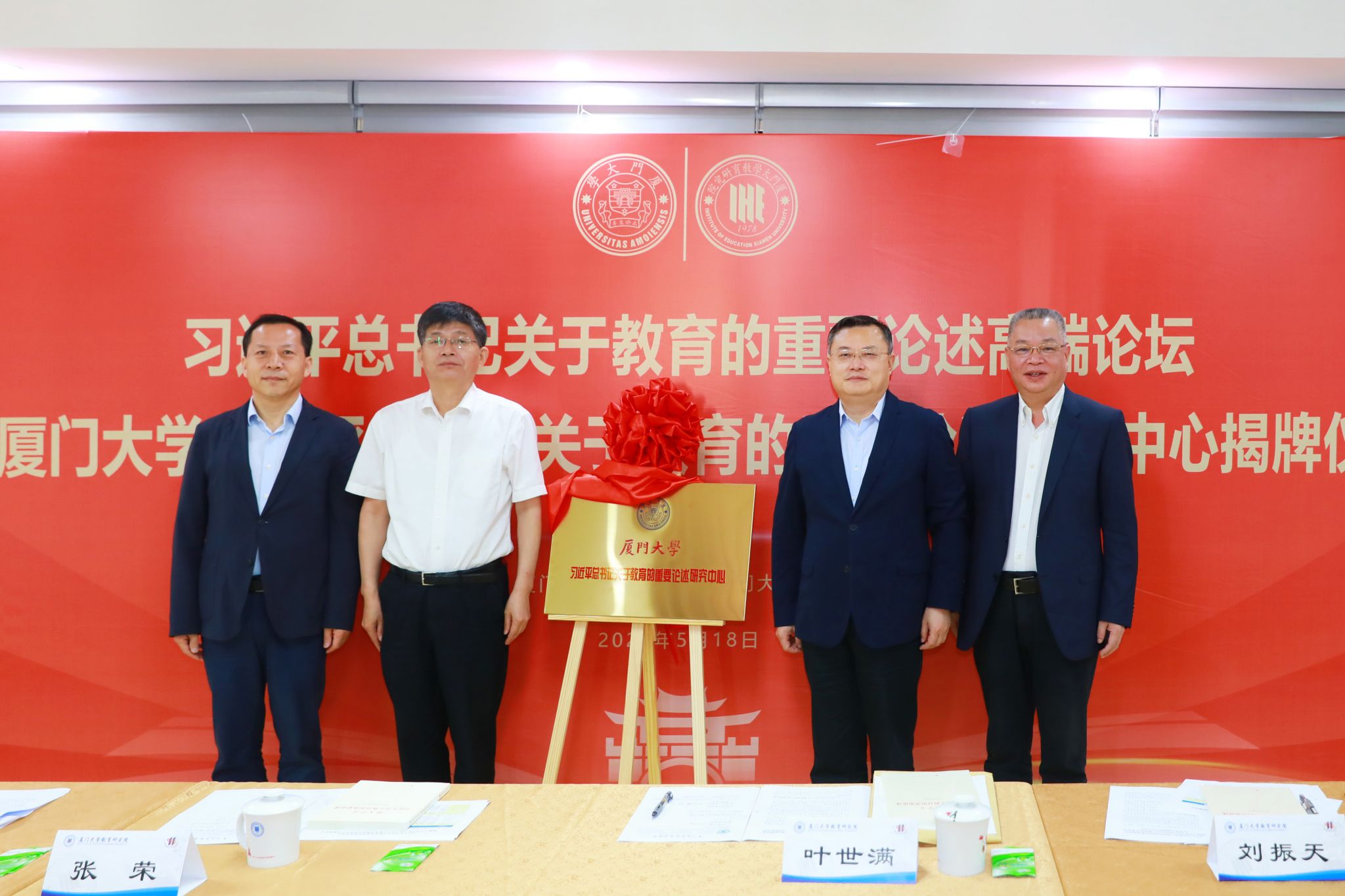 5月18日,习近平总书记关于教育的重要论述高端论坛暨厦门大学习近平总书记关于教育的重要论述研究中心揭牌仪式以线上线下相结合的方式举行。校党委书记张荣,国家教育咨询委员会委员、中国高等教育学会原会长瞿振元,教育部社会科学司司长徐青森,东北师范大学党委书记杨晓慧,闽江学院党委书记叶世满,教育部职业教育发展中心副主任曾天山,校党委副书记徐进功,中国人民大学教育评价中心执行主任周光礼出席。徐进功主持仪式。