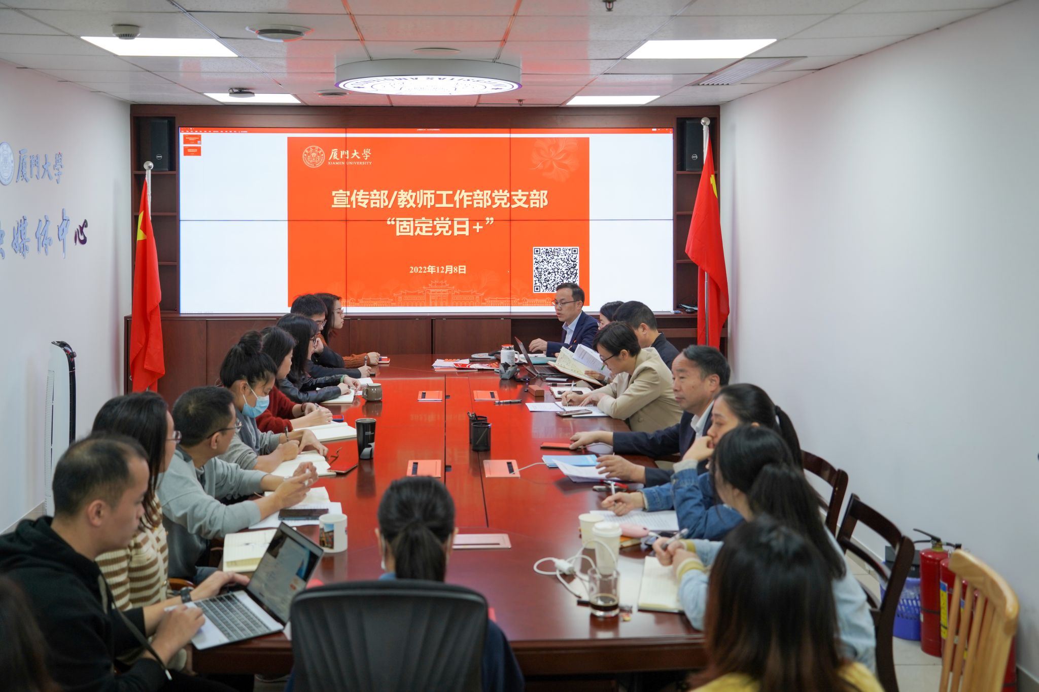 在全国上下学习宣传贯彻党的二十大精神之际,12月8日上午,宣传部/教师工作部党支部成员在部门会议室开展“固定党日+”活动,围绕2022年新修订《中国共产党章程》的重要修改内容,开展集中学习。
