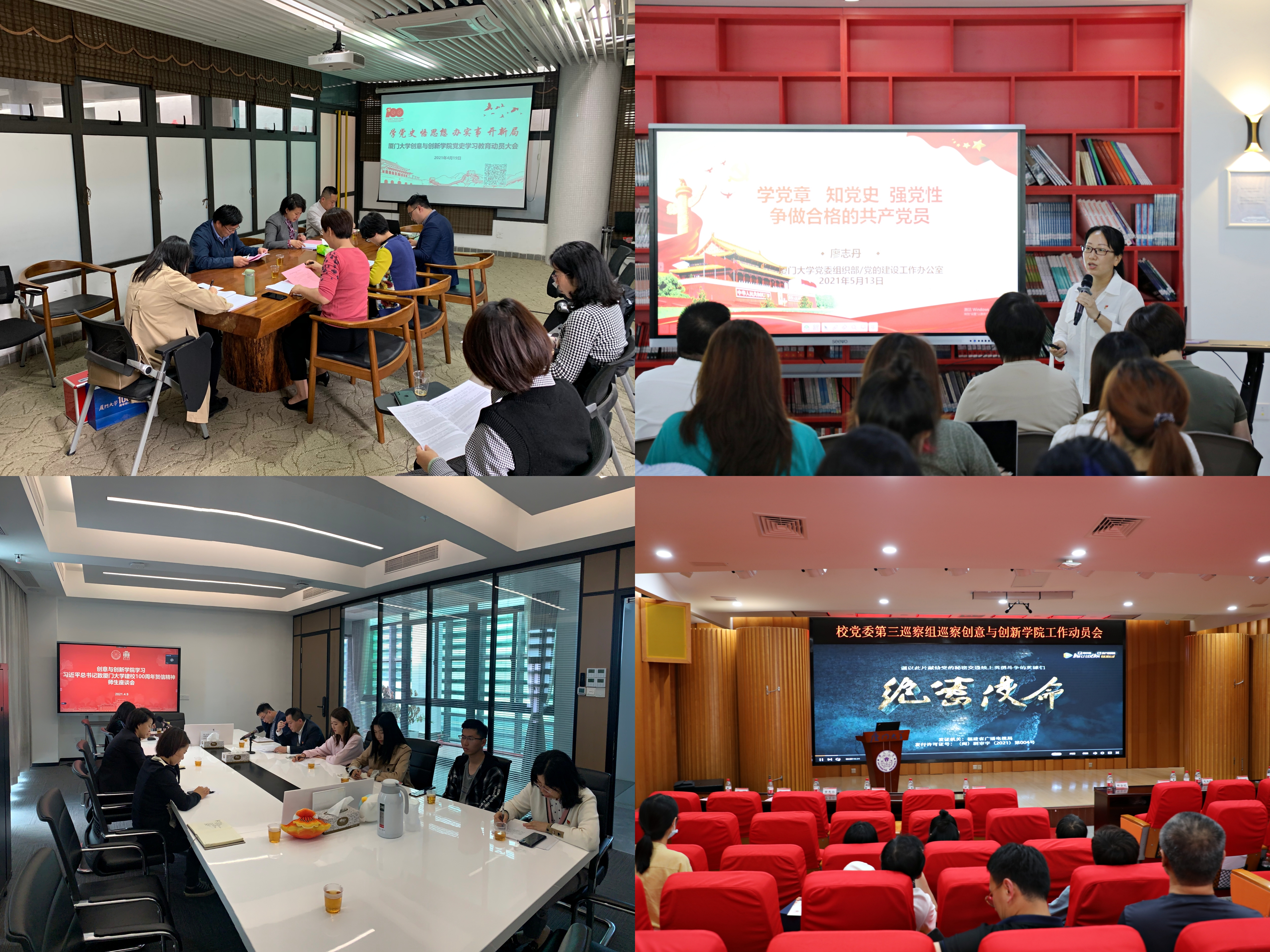 学院党总支理论学习中心组以上率下,先学一步、学深一层,坚持潜心自学习近平《论中国共产党历史》《毛泽东、邓小平、江泽民、胡锦涛关于中国共产党历史论述摘编》《习近平新时代中国特色社会主义思想学习问答》《中国共产党简史》等学习材料;专题学习“新民主主义革命时期历史”“党的十八大以来的历史”;把学习党史同学习贯彻习近平总书记致厦门大学建校100周年贺信精神结合起来,专题学习习近平总书记致厦门大学建校100周年贺信精神、考察清华大学重要讲话精神等。