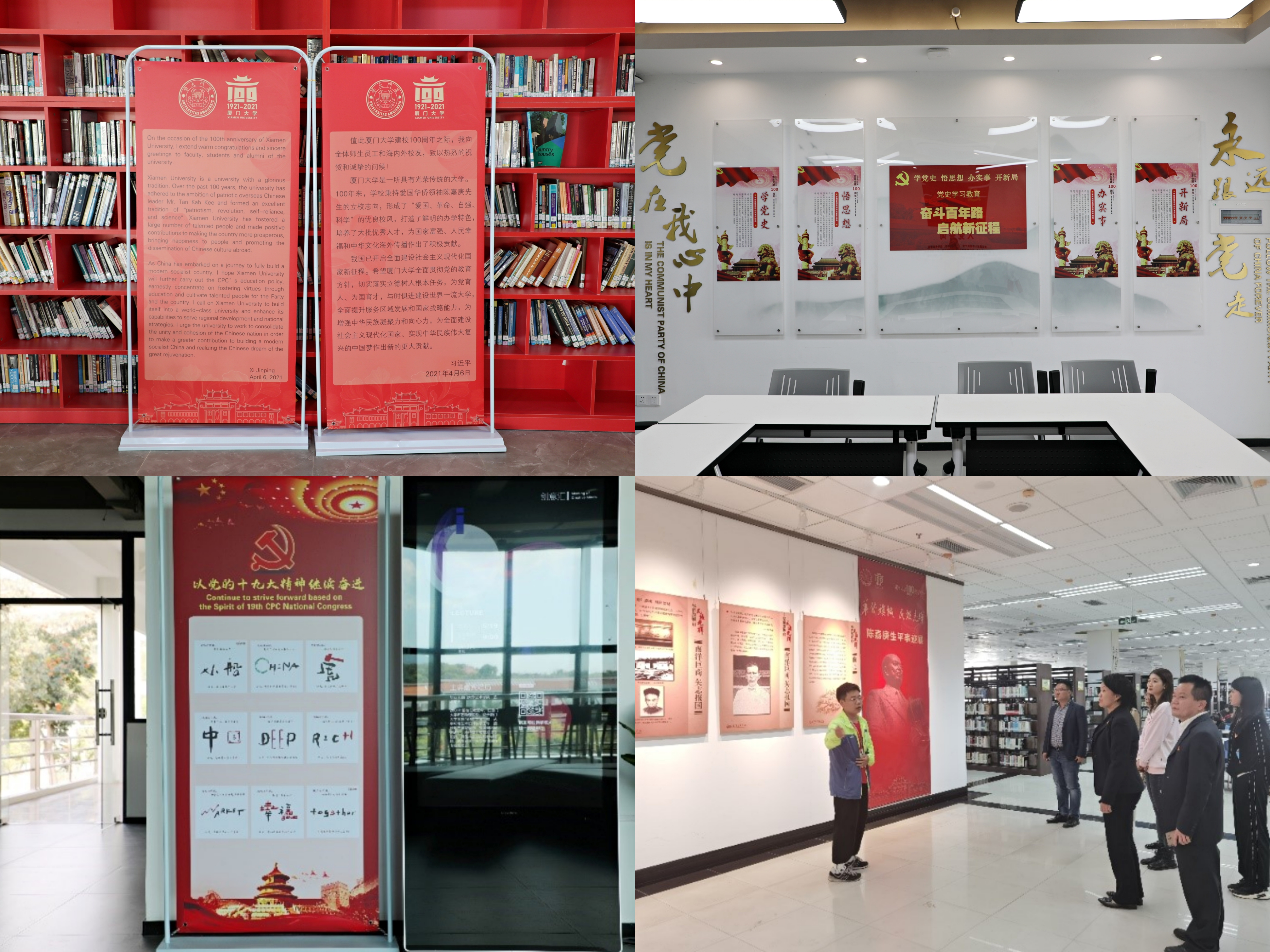 看展览、唱红歌、布置主题党团活动室……学院组织召开学习习近平总书记致厦门大学100周年贺信精神座谈会,师生代表在会上畅谈感想,抒发激动之情;组织前往漳州校区图书馆参观“华侨旗帜 民族光辉”陈嘉庚生平事迹展,师生在参展中深情感悟嘉庚先生的人格风范,深切缅怀嘉庚先生的历史功绩,深受教育;组建全体教职工合唱队,每周排练,积极参与“永远跟党走 奋进新征程”厦门大学教职工庆祝建党100周年合唱比赛,组建50人学生合唱队参加“青春心向党 逐梦新百年” 厦门大学第八届校园合唱节;设计打造党史学习教育主题党团活动室,活动室“一主四从”宣传栏可根据主题教育学习内容适时更换;中英文结合布置学院党史学习教育氛围,打造具有中外合作办学特色的党史学习教育宣传阵地。